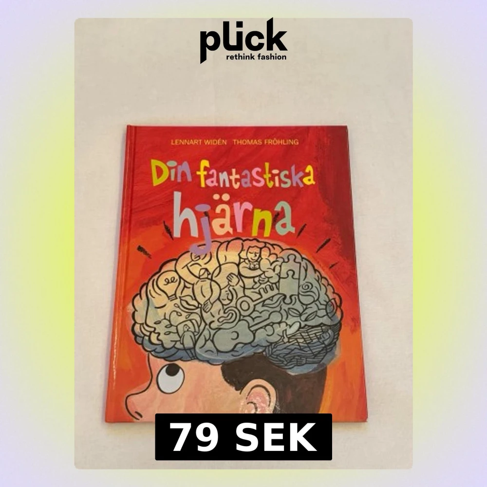 En färgglad och inspirerande bok med titeln 'Din fantastiska hjärna' av Lennart Widén och Thomas Fröhling. Omslaget har en tecknad hjärna och boken är inbunden med röd och orange framsida. Perfekt för dig som vill veta mer om hjärnan!