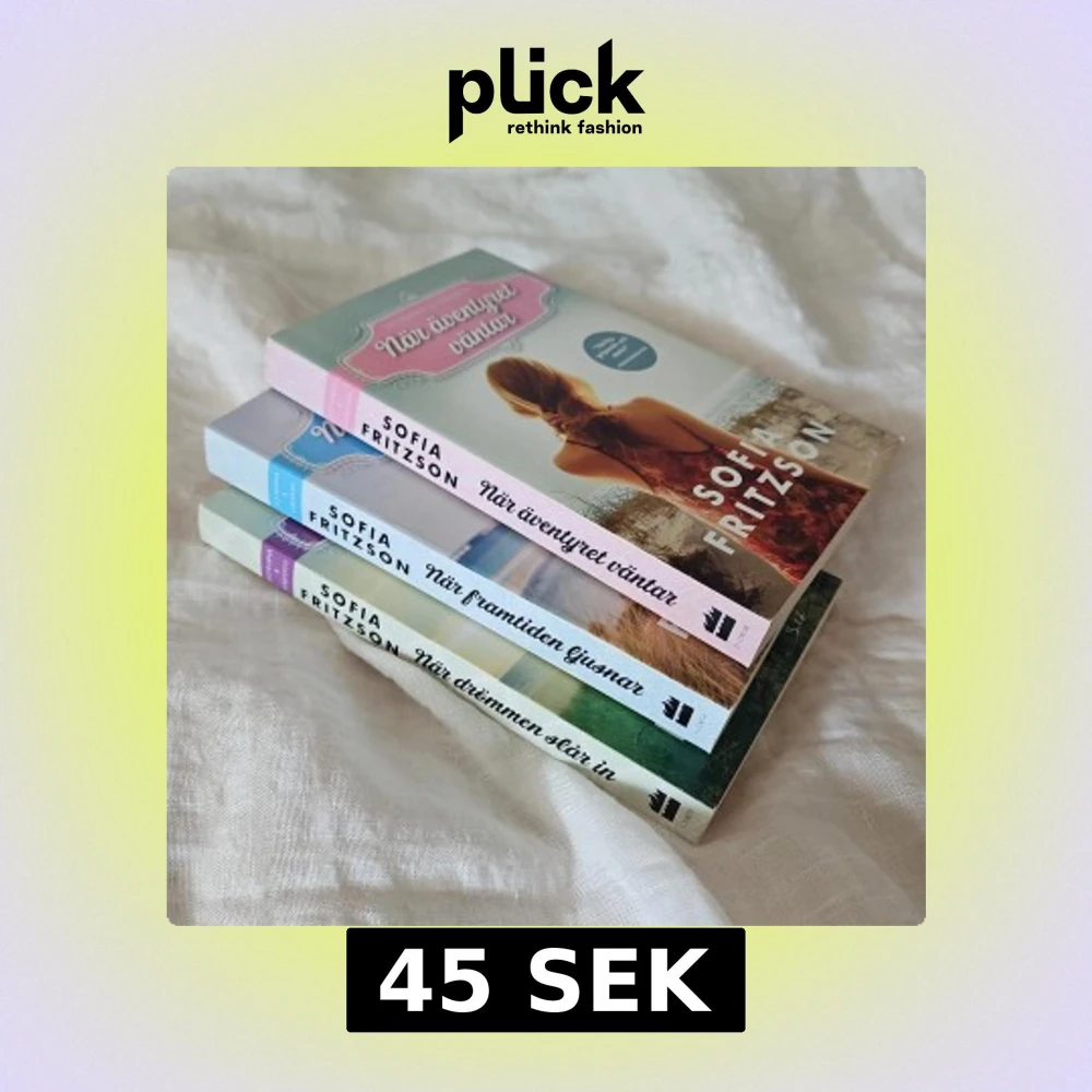 Säljer en trilogi av Sofia Fritzson: 'När drömmen slår in', 'När framtiden ljusnar' och 'När äventyret väntar'. Böckerna har mjuka pärmar med omslag i pastellfärger och motiv av kvinnor i somrig miljö. Perfekt för dig som gillar romance och familjehemligheter.