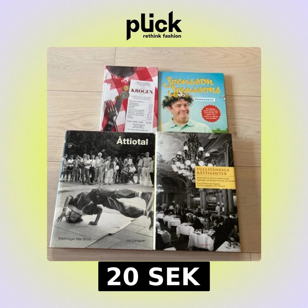Säljer dessa fyra böcker: •Svensson Svensson sommarbok •Krogen- allt du vill veta men inte vågat fråga- SÅLD •Fullständiga rättighetera- bok om svenskt krogliv- SÅLD •Åttiotalet- coffeetablebok med bilder från 80talet 2 kr styck Skickas eller möts upp