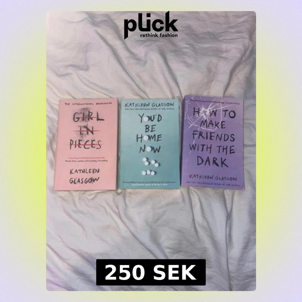 Böcker av kathleen Glasgow dom är i bra skick men girl in pieces är läst så den är i lite sämre skick men inte dåligt skick