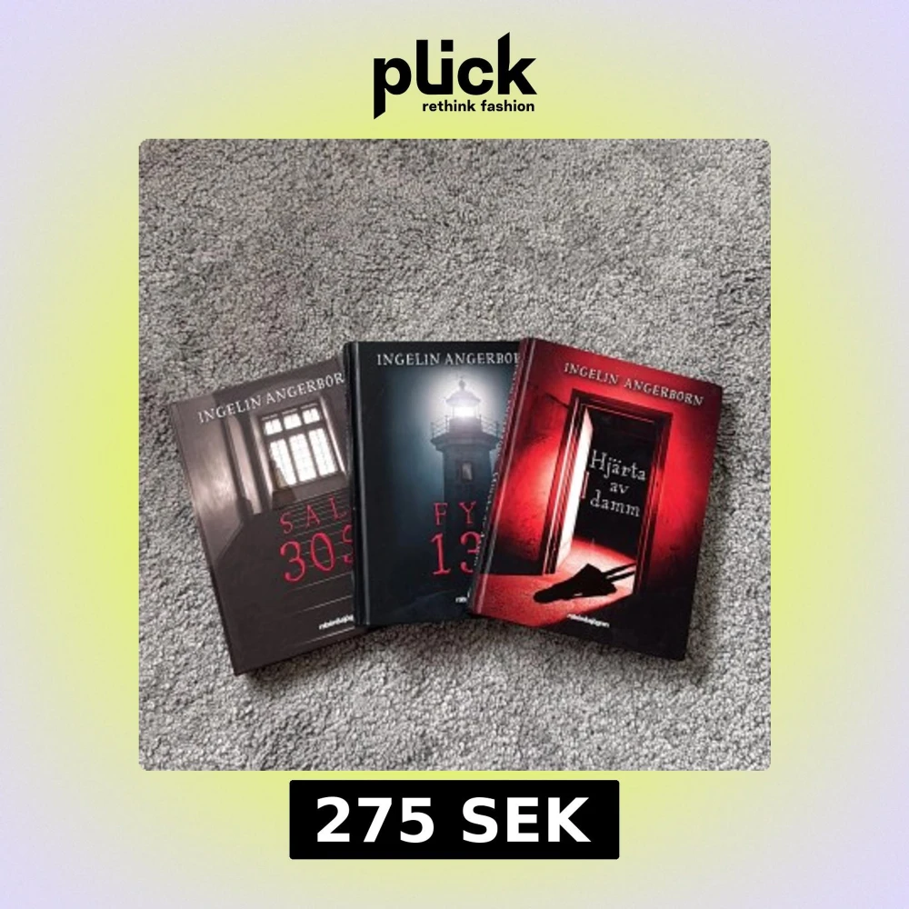 Tre spännande böcker av Ingelin Angerborn med mystiska och suggestiva omslag. Perfekt för dig som gillar nervkittlande berättelser och vill ha något riktigt fängslande att läsa. Passar unga vuxna som söker spänning och mystik. Säljer alla böcker för 275 kr, perfekt för yngre läsintresserade.