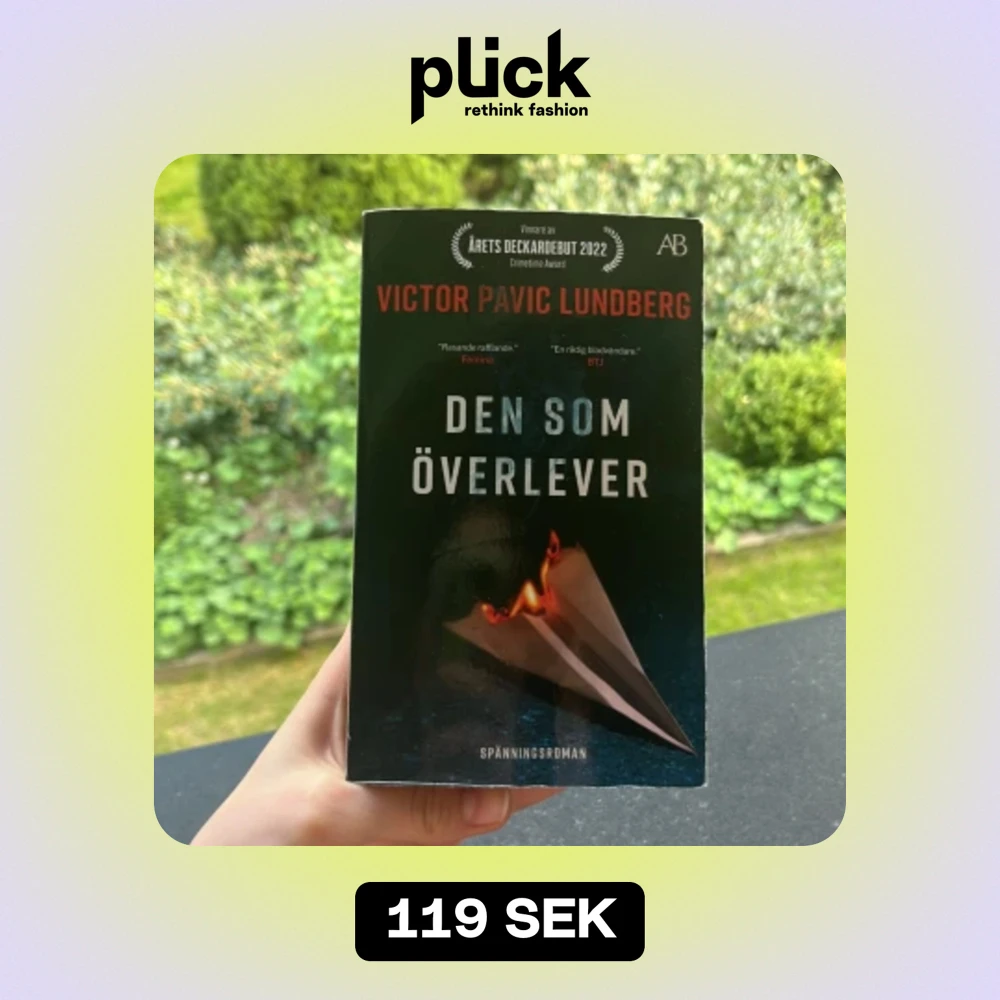 Den som överlever av Victor Pavic Lundberg En bok på 432 sidor, 87 kapitel Spänning och deckare, om en man som heter Loa och letar efter sanningen om en flygkrasch i Stockholm. Covern är lite sliten men ryggen är fortfarande k bra skick