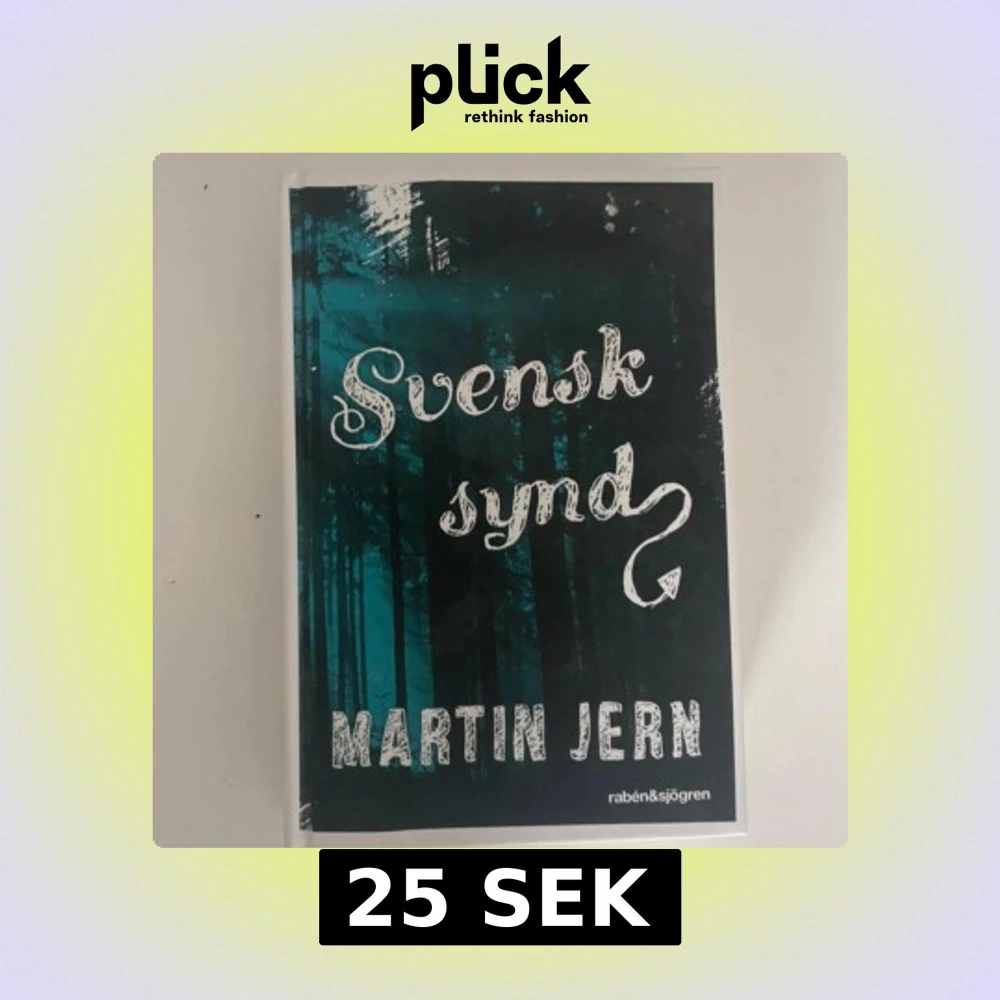 Boken 'Svensk synd' av Martin Jern är en spännande thriller utgiven av Rabén & Sjögren. Omslaget har en mystisk skog i mörka toner med titeln i vit stiliserad text. Handlingen kretsar kring Otto och hans mamma som ständigt är på flykt, med en intensiv och gripande berättelse.