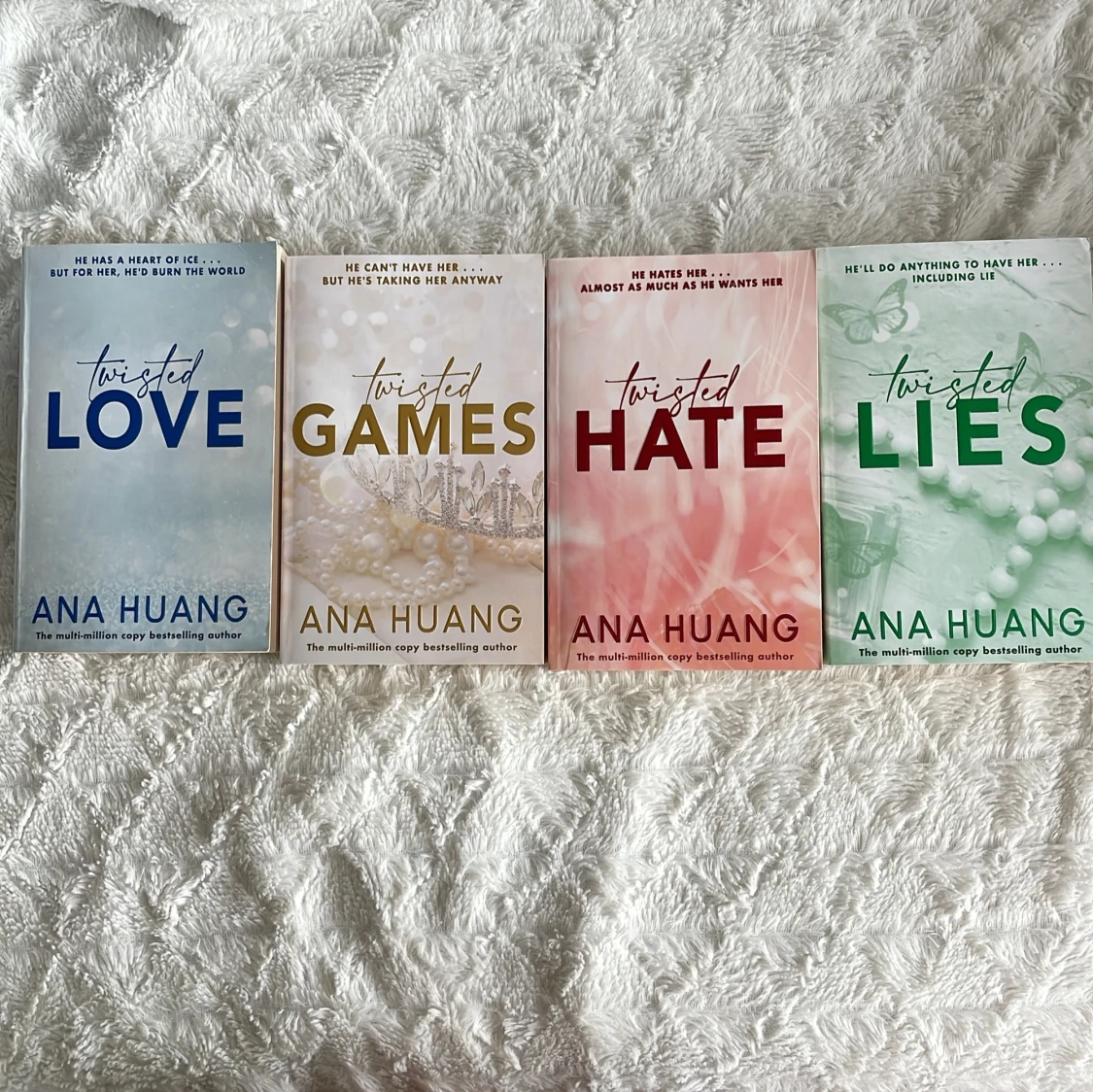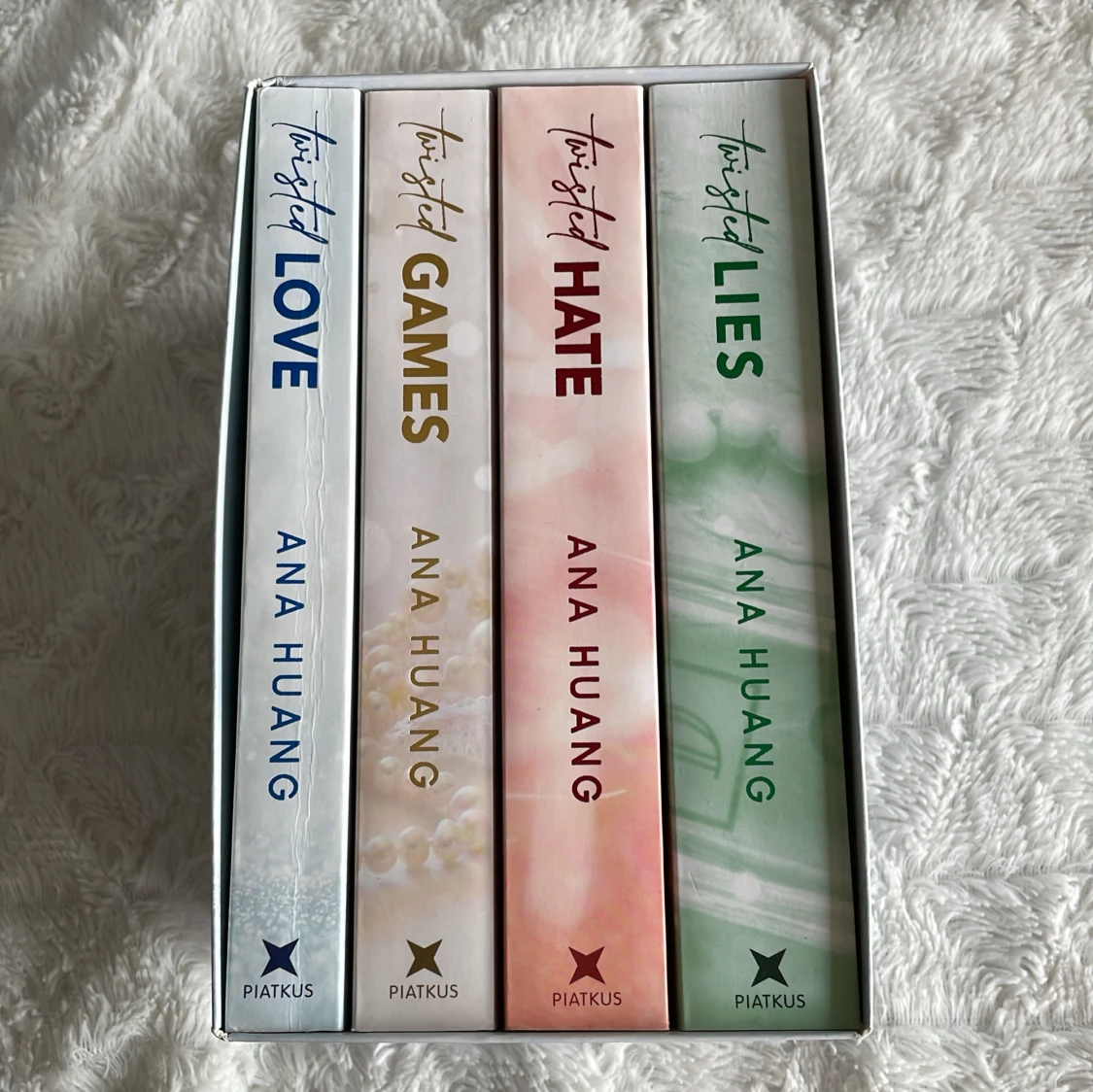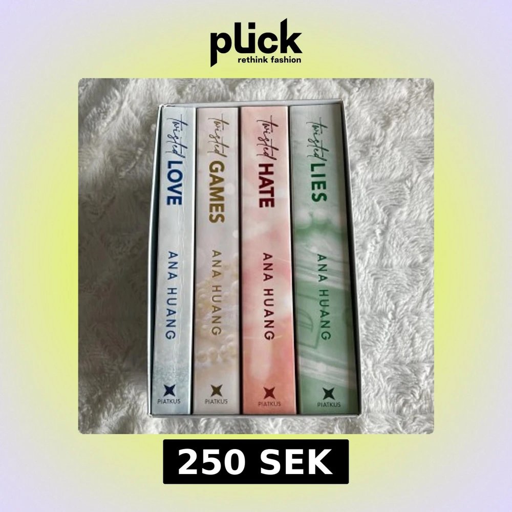 Twisted series av Ana Huang, Twisted Love, Twisted Games, Twisted Hate och Twisted Lies. Böckerna är i nyskick och är inte läst något förutom den första och den andra boken.