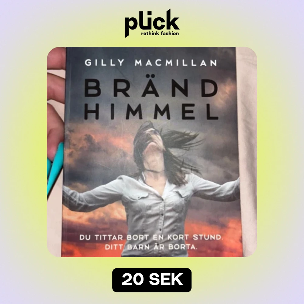 Bok bränd himmel av Gilly MacMillan, bruten rygg (se bild) annars i gott skick. Säljes pga flytt.