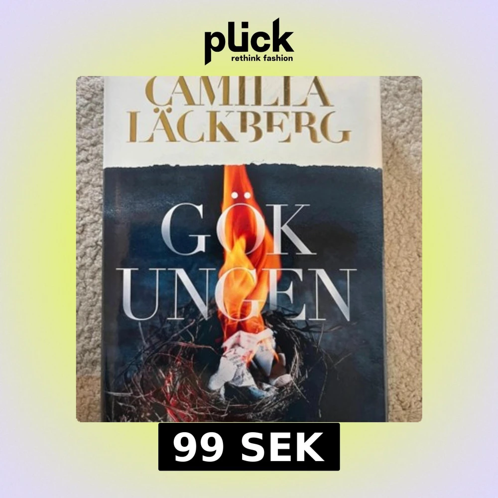 En spännande bok av Camilla Läckberg med ett omslag som visar en brinnande fågelunge i ett bo. Perfekt för dig som gillar mysterier och vill ha något riktigt fängslande att läsa.