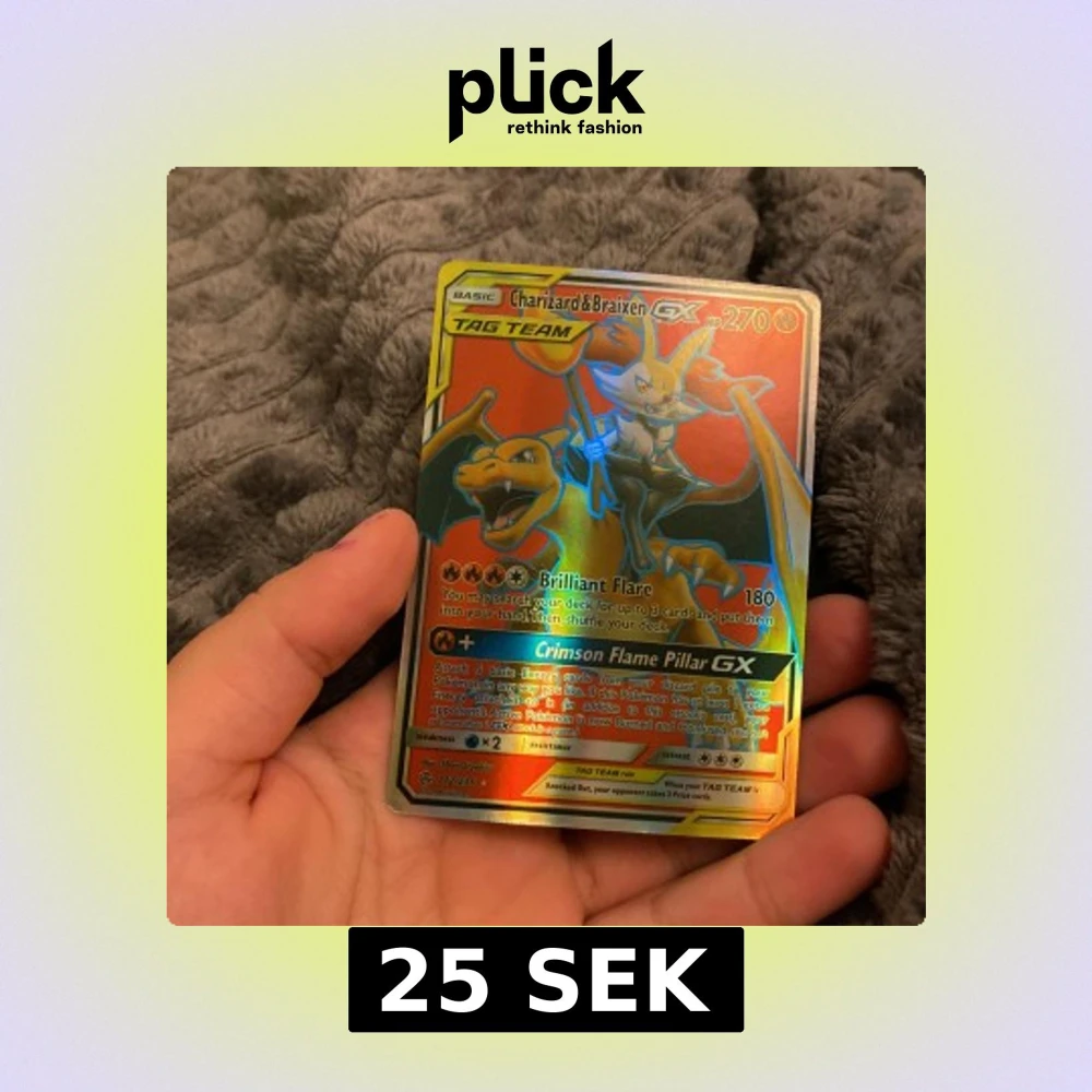 Säljer ett Charizard & Braixen GX TAG TEAM Pokémon-kort med 270 HP. Kortet har en holografisk yta och innehåller attacker som Brilliant Flare och Crimson Flame Pillar GX. Perfekt för samlare eller spelare som vill stärka sin kortlek.