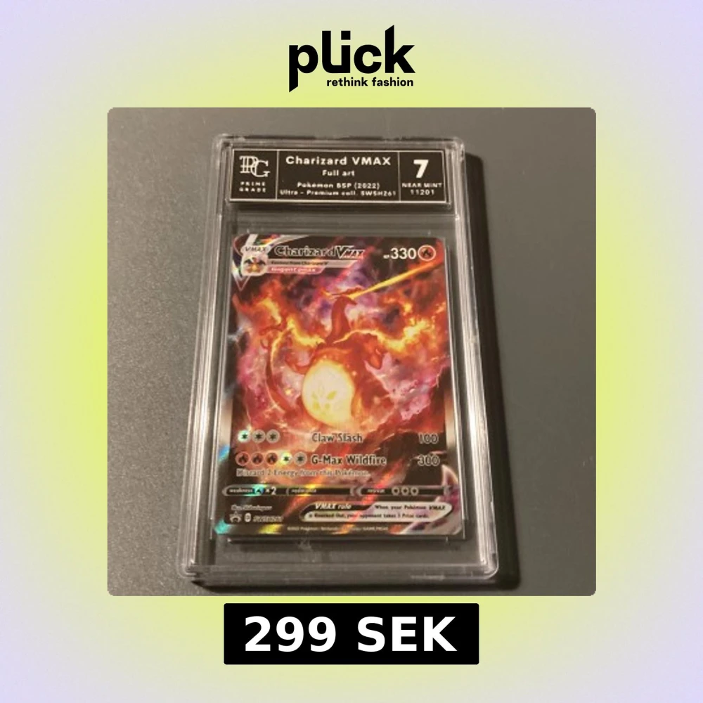 Säljer ett Charizard VMAX Full Art Pokémonkort från 2022, graderat 7 av Prime Grade. Kortet har en imponerande design med eldtema och är en del av Ultra-Premium Collection, SWSH261. Perfekt för samlare och Pokémonfans!