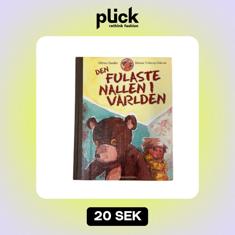 En charmig barnbok med titeln 'Den fulaste nallen i världen' av Mårten Sandén och Mimmi Tollerup-Grkovic. Omslaget visar en tecknad nalle och en docka i bakgrunden. Perfekt för barn som älskar berättelser om vänskap och äventyr.