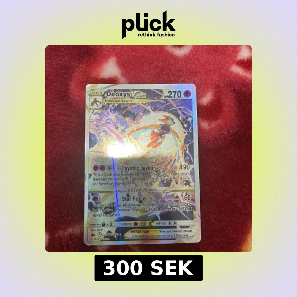 Cool och glittrig Deoxys VSTAR Pokémonkort! Perfekt för samlare och spelare som vill boosta sin lek med en kraftfull och unik VSTAR. Kortet har snygg design och är i fint skick – ett måste för alla Pokémon-fans!