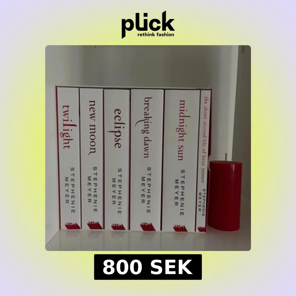 Säljer hela Twilight-serien av Stephenie Meyer. Boxen innehåller böckerna Twilight, New Moon, Eclipse, Breaking Dawn, Midnight Sun och The Short Second Life of Bree Tanner. Perfekt för fans av vampyrromantik och spänning. Köpte för 800kr. Lägg bud❤️ Dom är är på engelska. Endast läs en av böckerna. Skriv i dm om funderingar, kan skicka mer bilder också