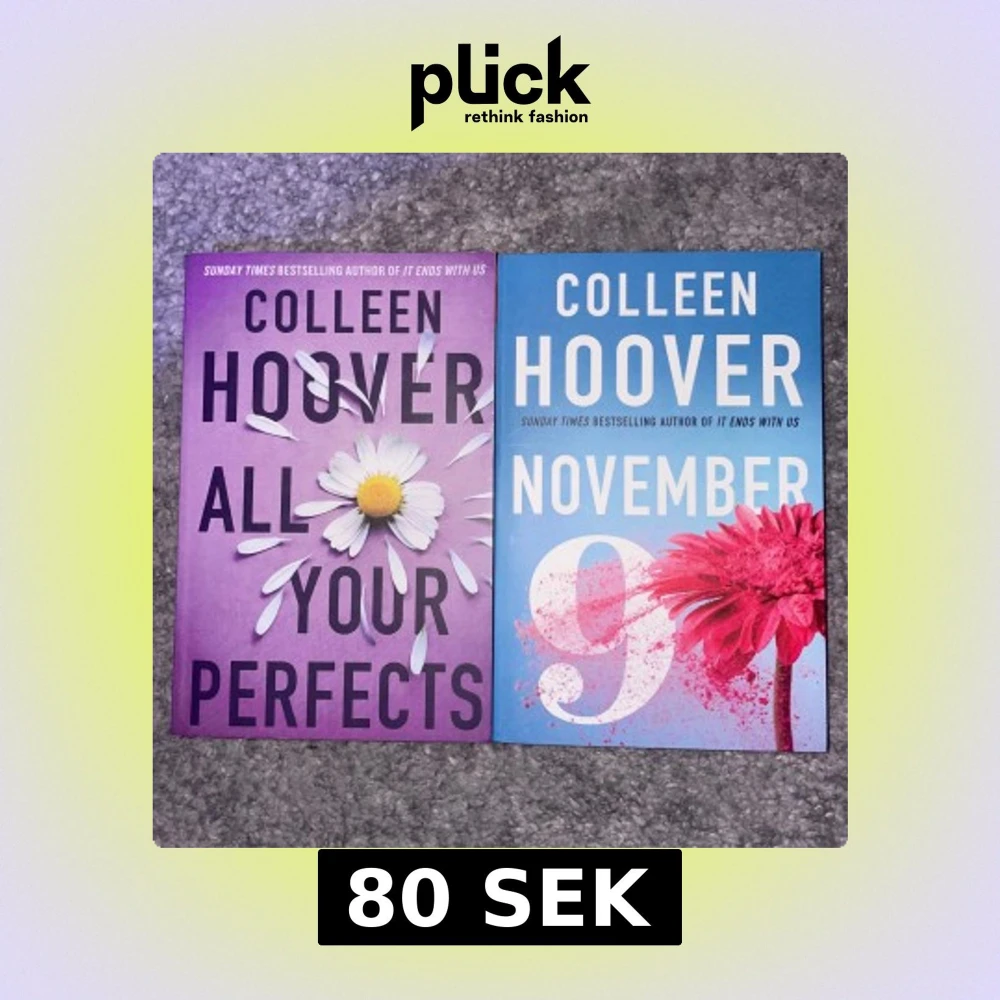 Två böcker av Colleen Hoover: 'All Your Perfects' och 'November 9' på engelska. Båda böckerna handlar om kärlek och relationer, med djupa känslor och oväntade vändningar. Perfekt för dig som älskar romantiska berättelser. Jag har läst ’All your perfects’ men den andra har inte blivit läst (är som ny). Båda för 80kr + frakten 😊