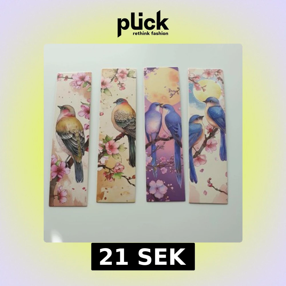 Fyra färgglada bokmärken med vackra illustrationer av fåglar bland körsbärsblommor. Perfekt för dig som vill göra läsningen extra inspirerande och personlig! Passar både ungdomar och unga vuxna som älskar natur och estetik.