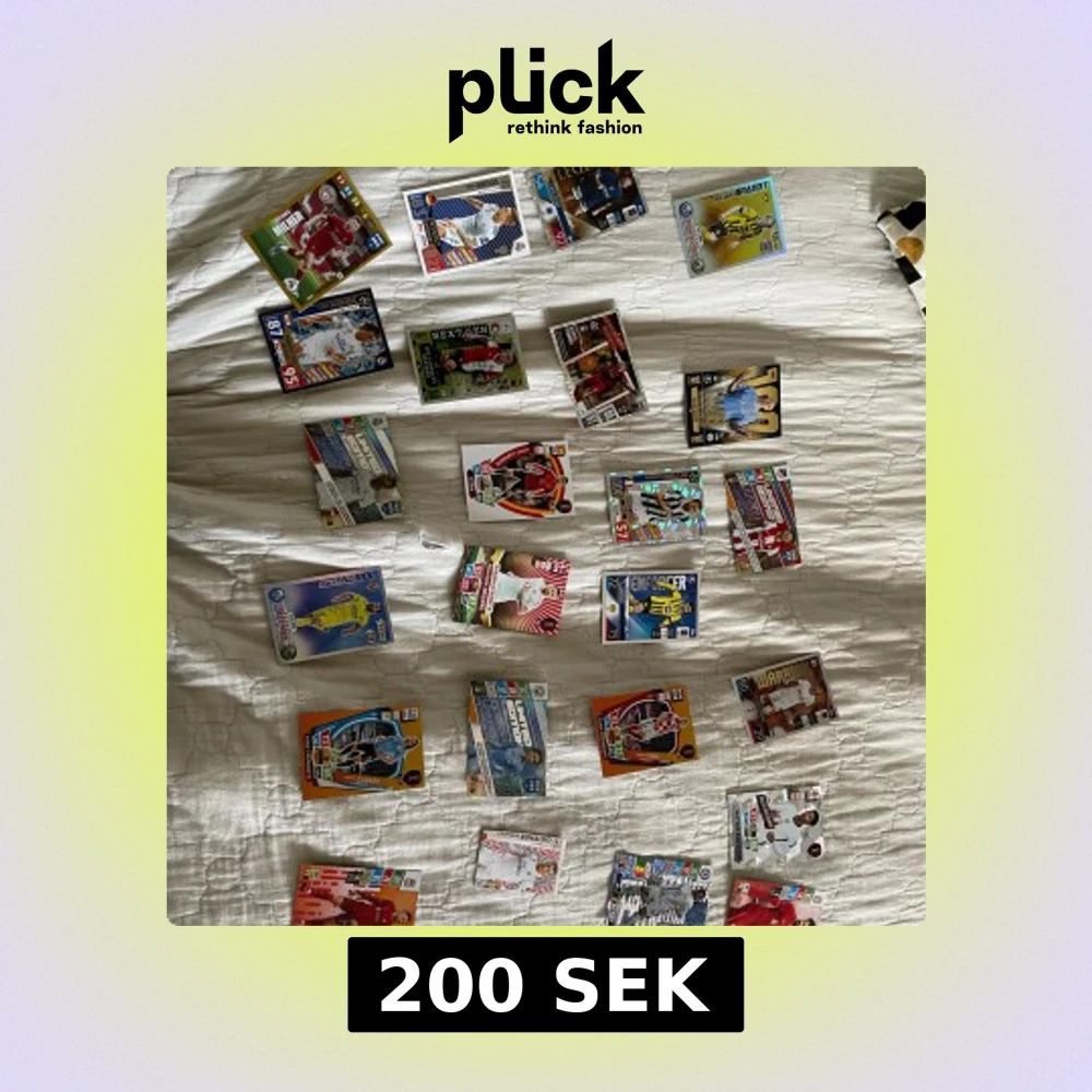 Samling av färgglada fotbollskort med kända spelare från olika ligor och lag. Perfekt för dig som älskar fotboll, vill byta med vänner eller bygga din egen drömelva. Inspirerar till samlarintresse och fotbollssnack bland unga fans. Många gamla talanger och sällsynta kort som till exempel Messi , Ronaldo och massa mer. Ifall du är intresserad av nån eller några specifika så kan du bara skriva till mig och vilka du är intresserad av. Ifall du vill ha specifika så får du dom i plastficka. 125 kort.