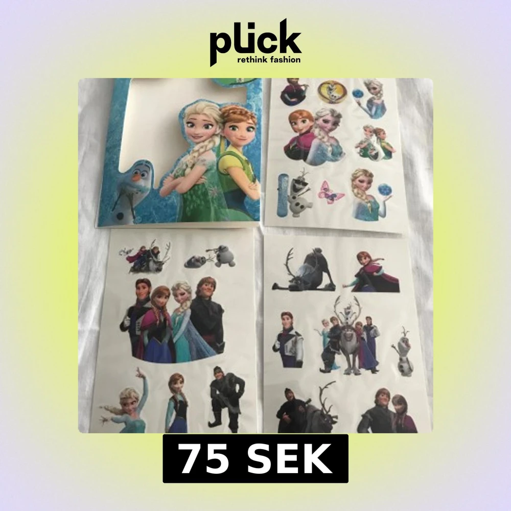 Ett set med klistermärken från filmen Frozen. Innehåller bilder av karaktärerna Elsa, Anna, Olaf och fler. Perfekt för att dekorera böcker, väggar eller andra ytor med ett magiskt tema.