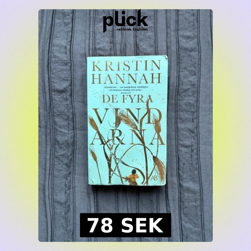En roman av Kristin Hannah med turkos omslag och guldiga detaljer. Boken handlar om familjeband, uthållighet och kvinnors styrka under 1930-talets Amerika. Omslaget har illustrationer av vete och en person i siluett. Perfekt för dig som gillar gripande berättelser.