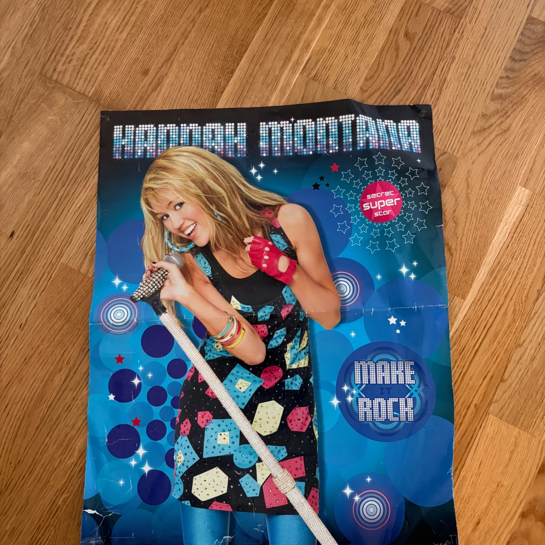 Färgstark och glittrig Hannah Montana-affisch från 2008! Perfekt för dig som älskar musik, popkultur och vill ge ditt rum en cool superstar-vibe. Motivet visar Hannah med mikrofon och energi – en riktig ikon för unga fans.