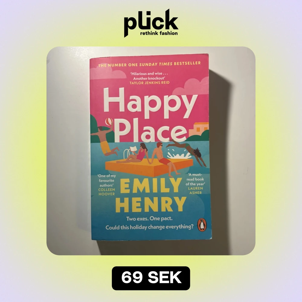 Happy Place av Emily Henry. Väldigt bra bok, köptes på Akademibokhandeln för 220kr. Boken är sliten därav priset. Kolla in andra böcker i min profil samfrakta gärna. Skriv för frågor! 🩷