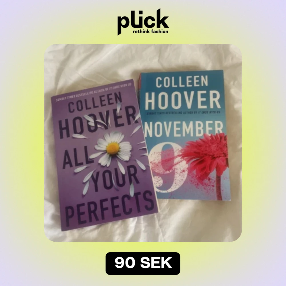 Säljer ”all your perfects” och ”november 9” skrivna av Colleen Hoover. Böckerna är aldrig använda men samtidigt ”syns” det att de inte är köpta igår. Båda böckerna är på engelska. 50kr för en 90kr för båda, nypris runt 300kr🙌
