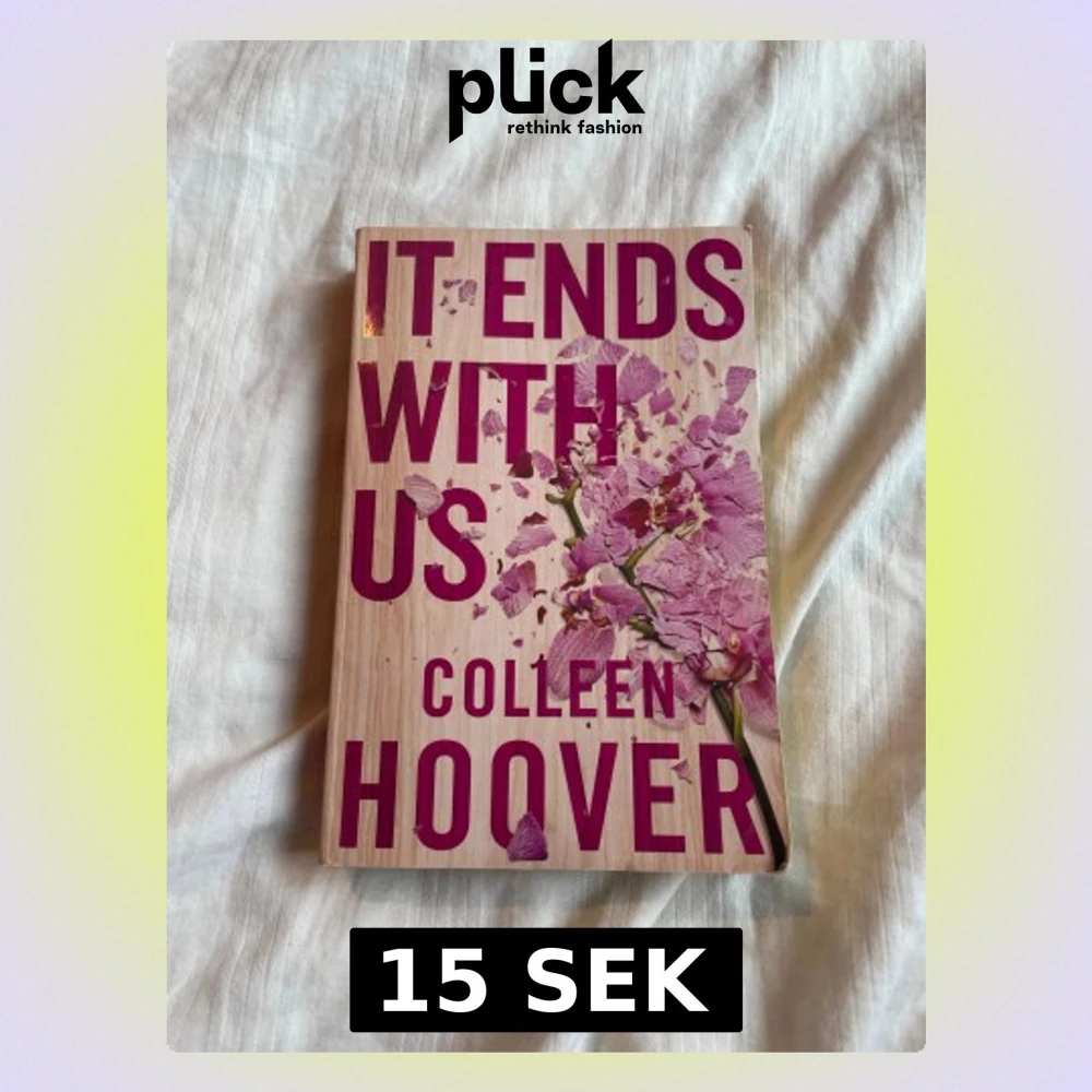 It ends with us av Colleen hoover boken är i helt okej skick haft den ett tag så sidorna blivit lite gula den är läst med så man ser att den är använd men säljer för bara 15 men man kan få it starts with us också för 40 asså båda för 40 skriv privat om nån är intresserad av båda för 40 men it starts with us är inbunden och är större