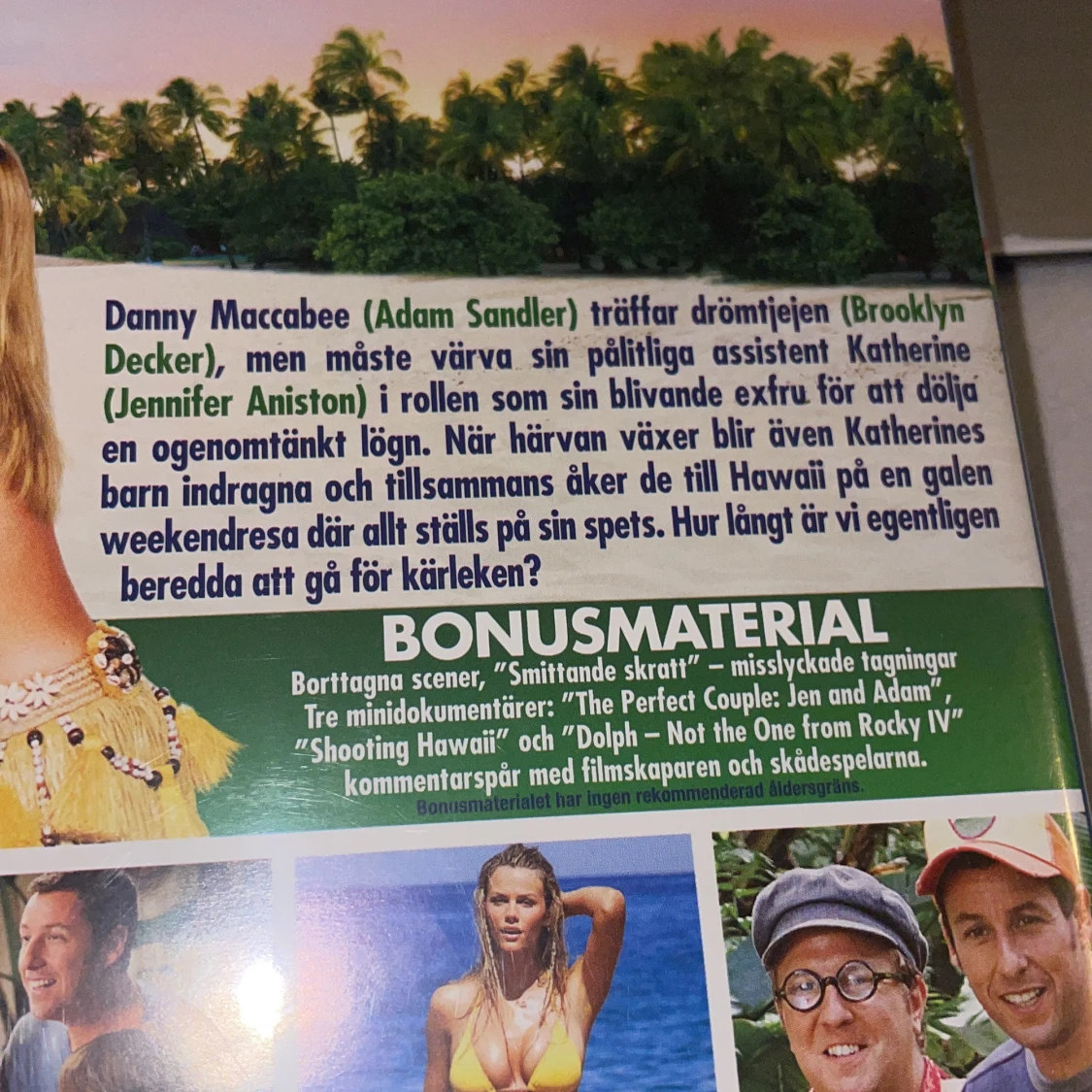 Säljer en DVD av filmen 'Just Go With It' med Adam Sandler och Jennifer Aniston. Det är en romantisk komedi där en man måste låtsas vara gift för att dölja en lögn. Perfekt för en filmkväll med mycket skratt! Inkluderar bonusmaterial som borttagna scener och bloopers. Skivan är i bra skick och fodralet är helt. Perfekt för dig som älskar komedier!