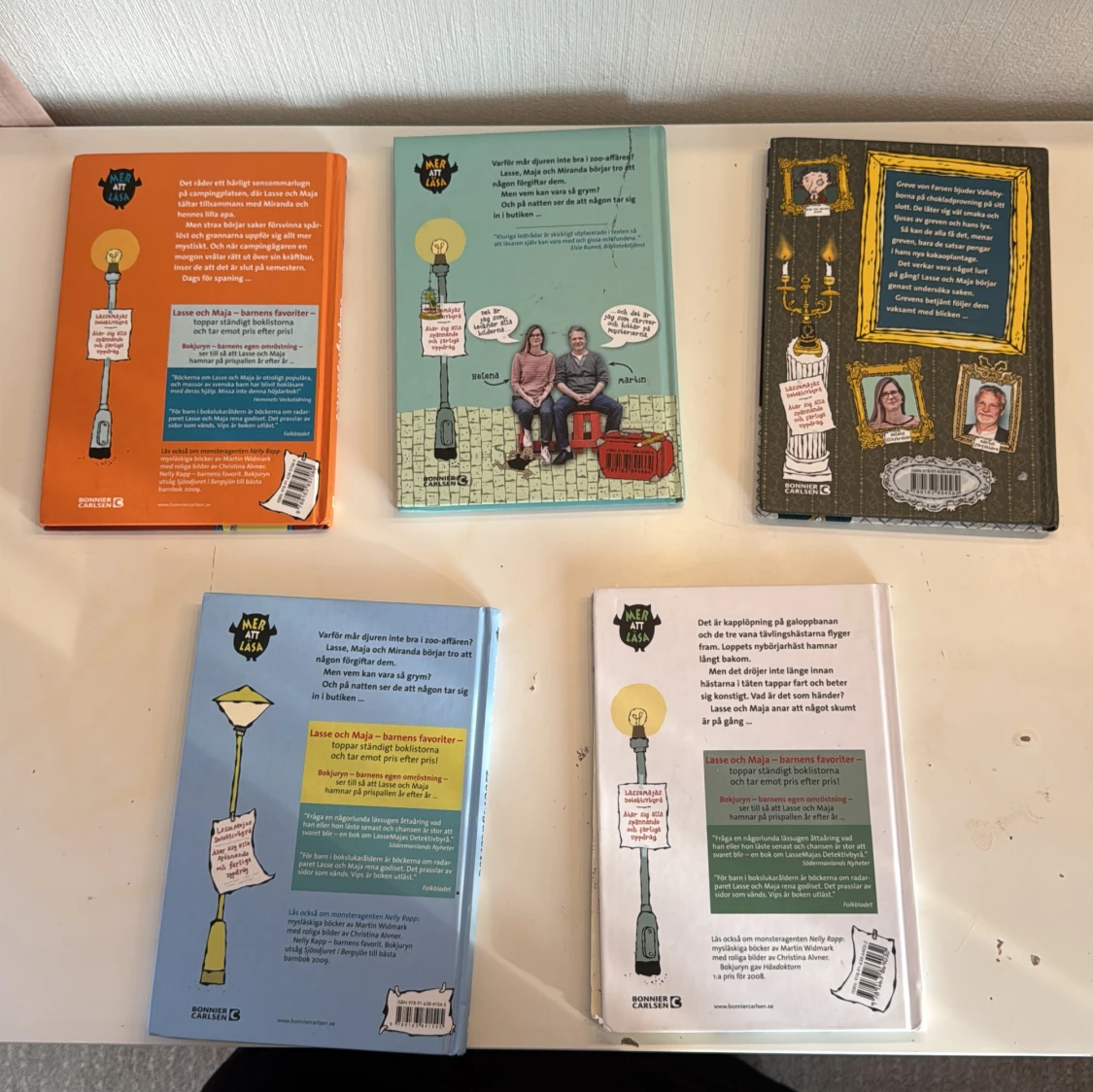 Jag säljer 4 st Lasse Maja böcker. Camping mysteriet, zoo mysteriet (i färg), zoo mysteriet (svart vitt) och slott mysteriet. (Galoppmysteriet är ej till salu) Alla är i bra skick, knappt använda! Säljer styck‼️