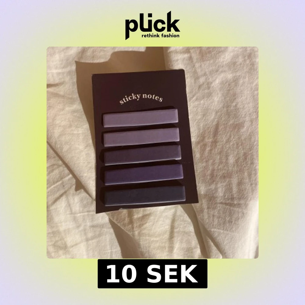 Säljer ett set med lila sticky notes i olika nyanser. Perfekt för att organisera dina anteckningar eller markera viktiga sidor i böcker. Kompakt och lätt att ta med sig.