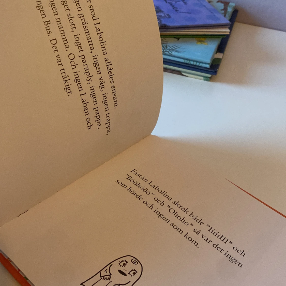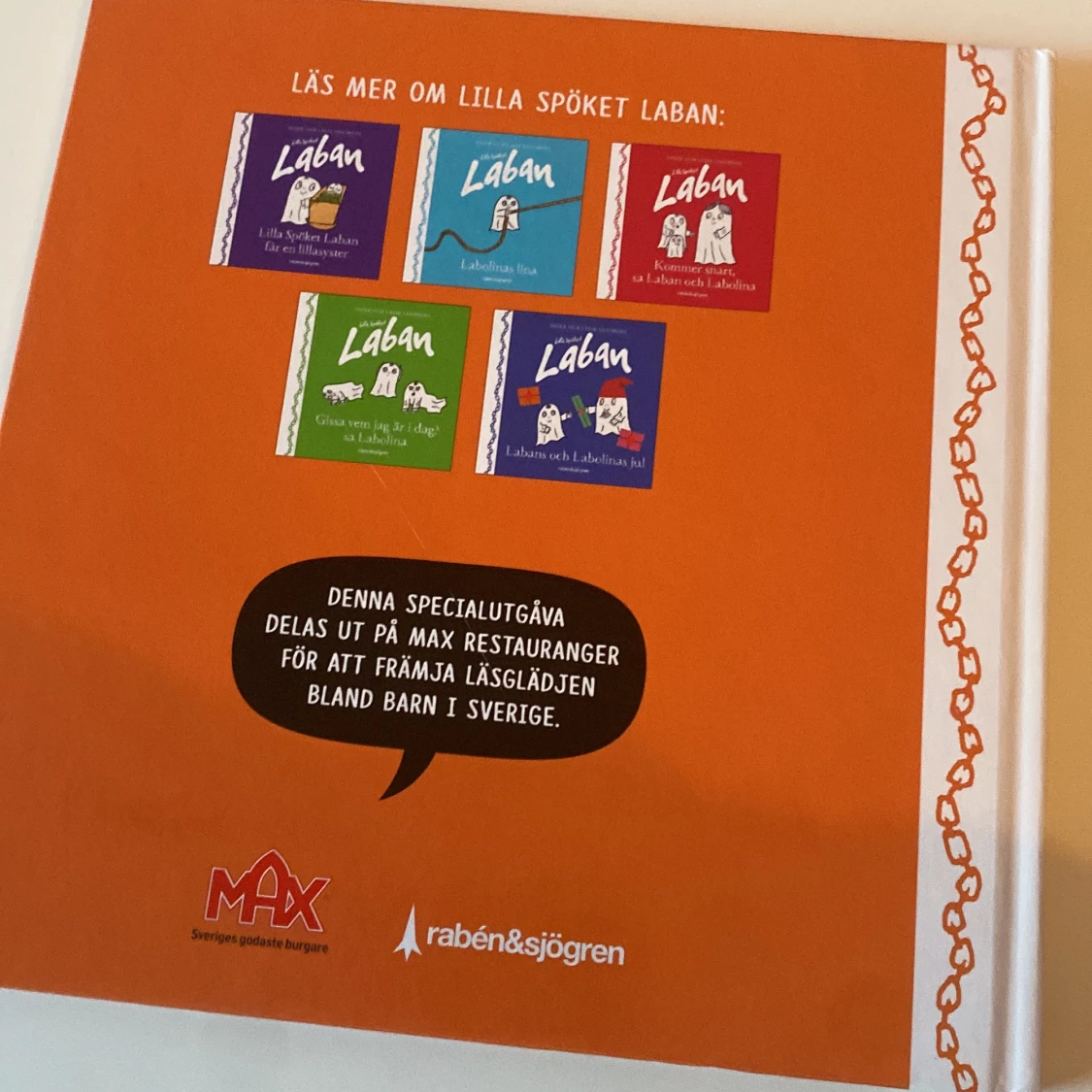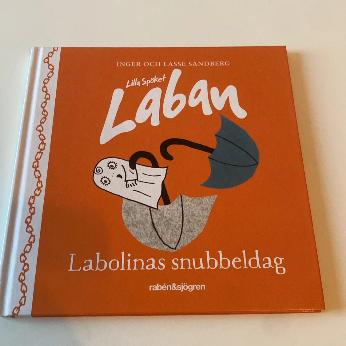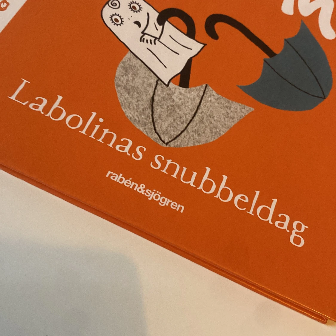 Denna bok är en del av serien om Lilla Spöket Laban och handlar om Labolinas snubbeldag. Den har en orange framsida med en illustration av ett spöke och ett paraply. Boken är en specialutgåva som delas ut på Max restauranger för att främja läsglädje bland barn i Sverige.