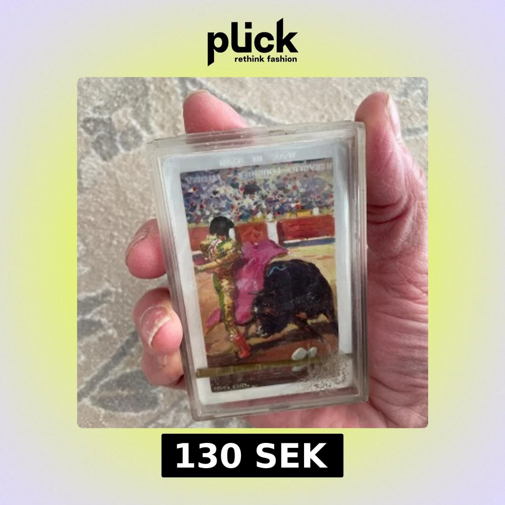 Säljer en unik kortlek från Fournier med motiv av tjurfäktning på baksidan. Kortleken kommer i en plastask och inkluderar en poängtabell för bridge. Perfekt för samlare eller kortspelsentusiaster!