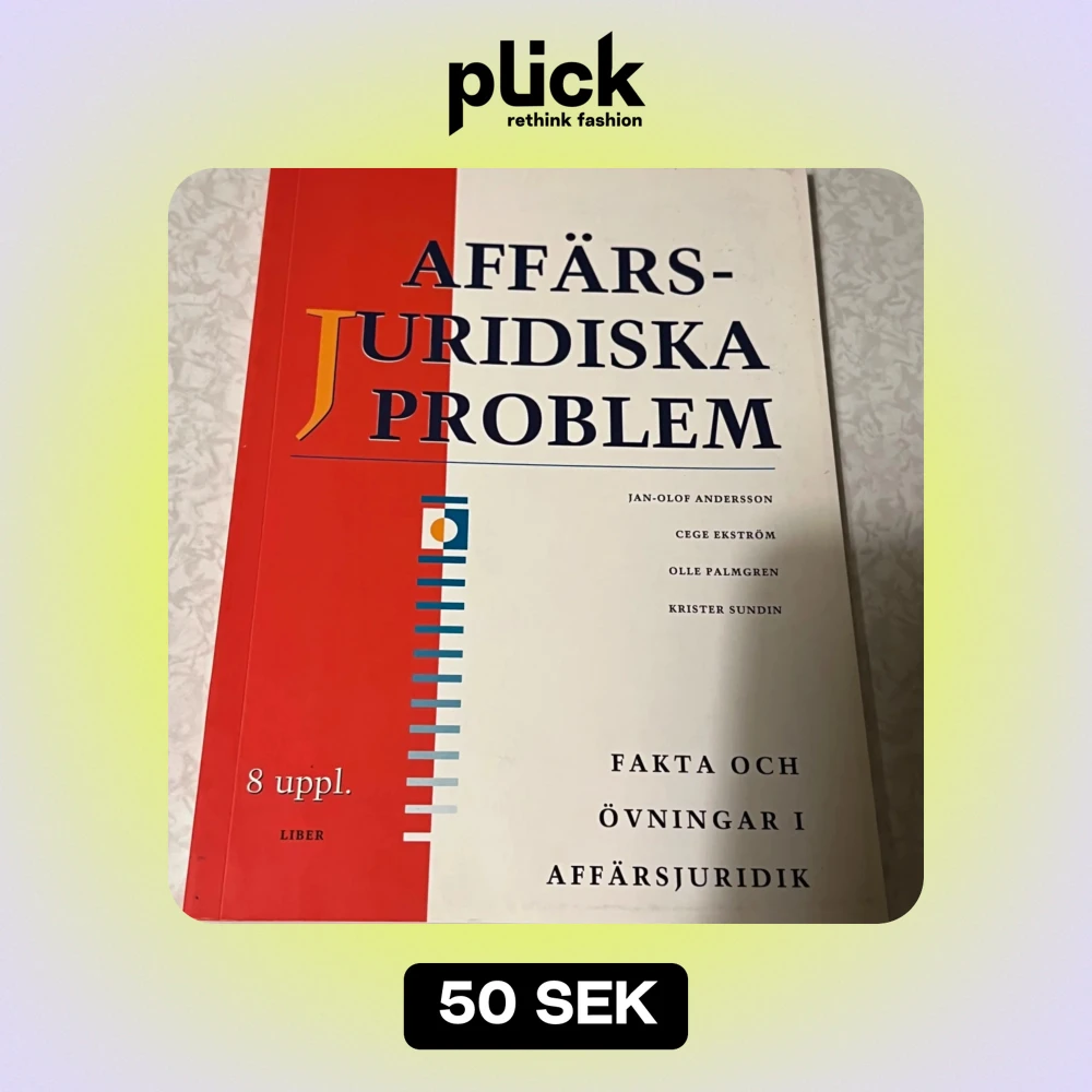Säljer boken 'Affärsjuridiska problem' av Jan-Olof Andersson m.fl., 8:e upplagan. Perfekt för grundläggande kurser i affärsjuridik. Innehåller fakta och övningar för att träna juridisk problemlösning. Boken är i bra skick och kommer från ett djur- och rökfritt hem. Säljs för 50