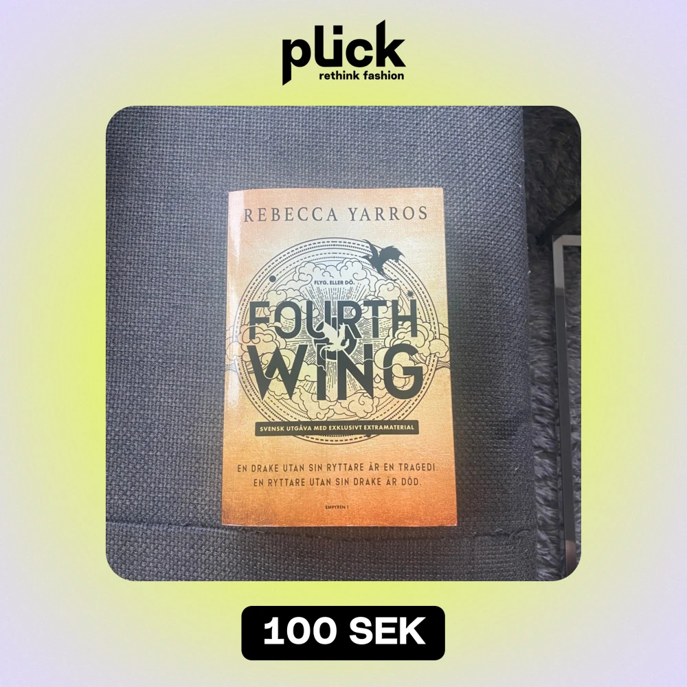 Svensk utgåva av 'Fourth Wing' av Rebecca Yarros, med exklusivt extramaterial. Boken är en romantisk fantasy från 2023, där vi följer Violet Sorrengail i en värld av drakar och faror. Perfekt för dig som älskar spänning och magi!