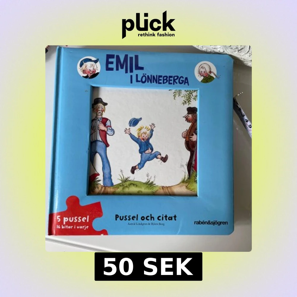 En charmig pusselbok med Emil i Lönneberga tema. Boken innehåller flera pussel med illustrationer från berättelserna om Emil. Men alla pussel bitar saknas .men man kan ända läsa boken ,