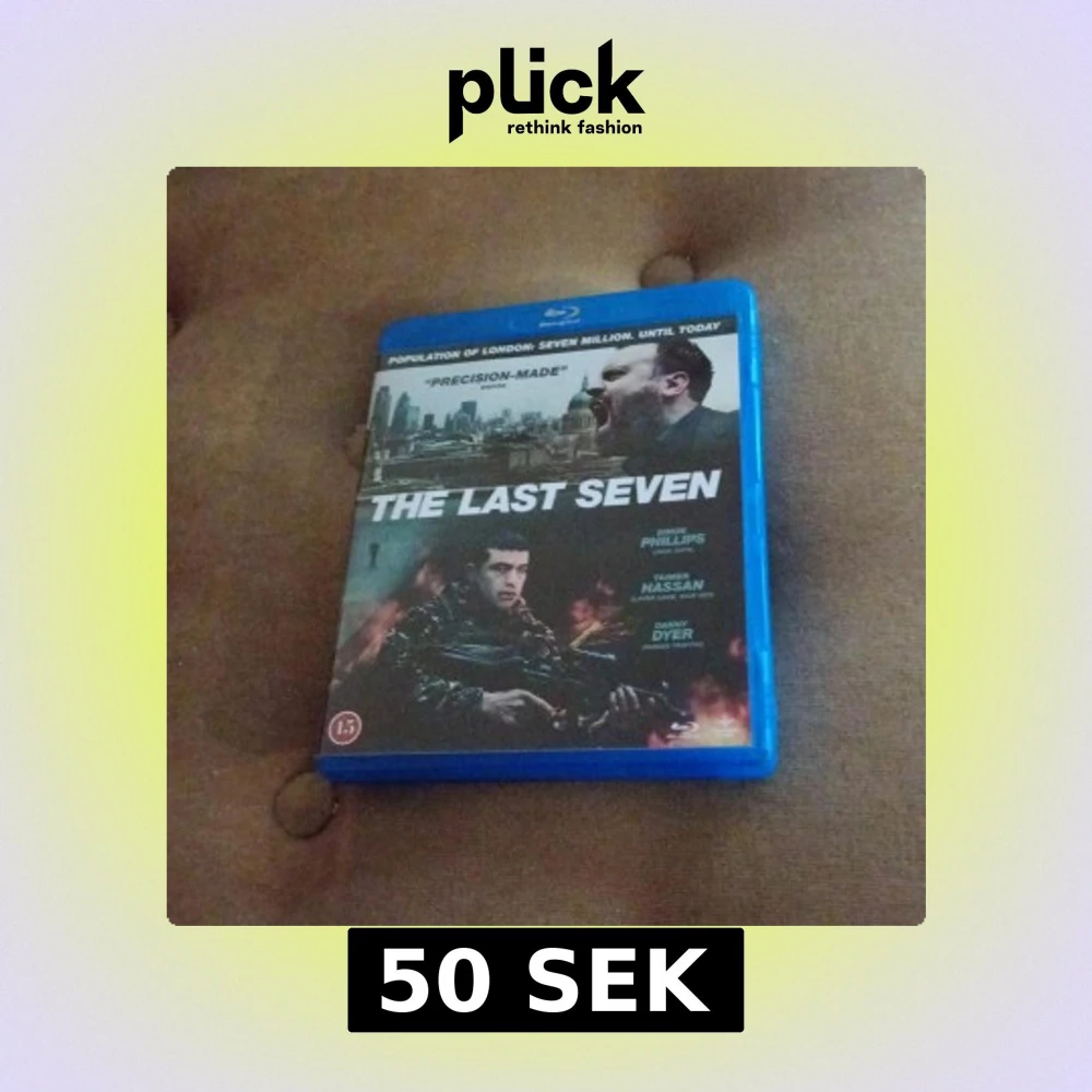 Blu-ray av filmen 'The Last Seven' med ett dramatiskt omslag som visar en man med vapen och en stad i bakgrunden. Omslaget har en blå plastfodral och filmen är märkt med åldersgräns 15 år.