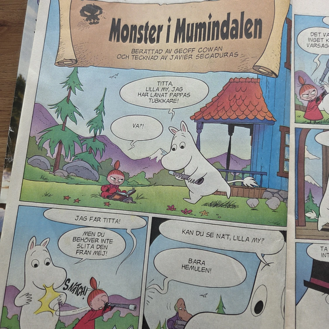 Följ med Mumin och Lilla My på roliga och spännande äventyr i Mumindalen! Denna färgglada serietidning bjuder på 16 pysselsidor och massor av humor, pirater och vänskap. Perfekt för dig som gillar tecknade berättelser och vill ha kul!
