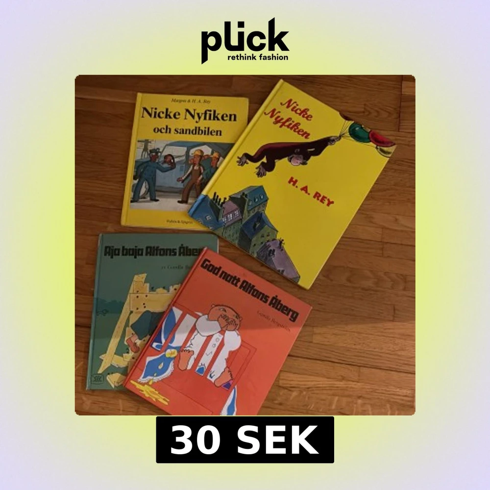 Fyra klassiska barnböcker: två om den busiga apan Nicke Nyfiken och två om charmiga Alfons Åberg. Perfekt för dig som gillar roliga och färgglada berättelser med ikoniska karaktärer. Passar både nostalgiska unga vuxna och nya läsare.