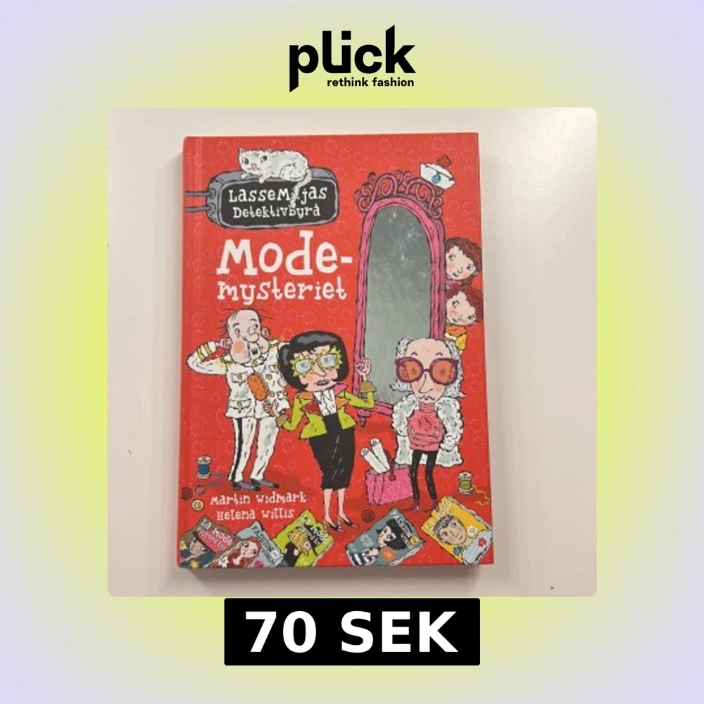 En färgglad och rolig barnbok om LasseMajas Detektivbyrå där de löser ett mysterium i modevärlden. Boken har hårda pärmar med tecknade illustrationer i rött, vitt och grönt. Perfekt för unga läsare som gillar spänning och kluriga gåtor.