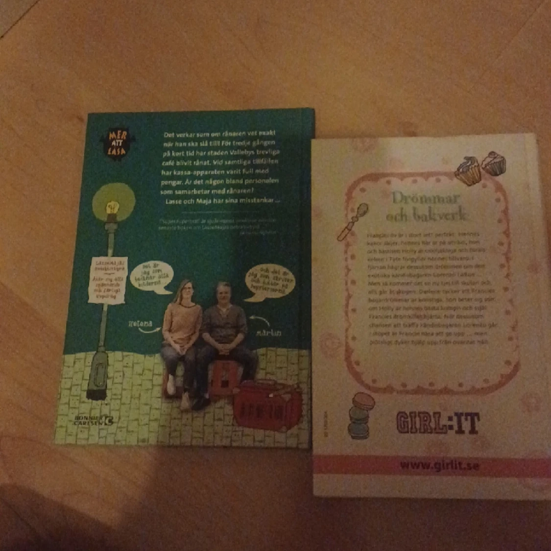 En bok heter drömmar och bakverk och den andra boken heter cafe- mysteriet.