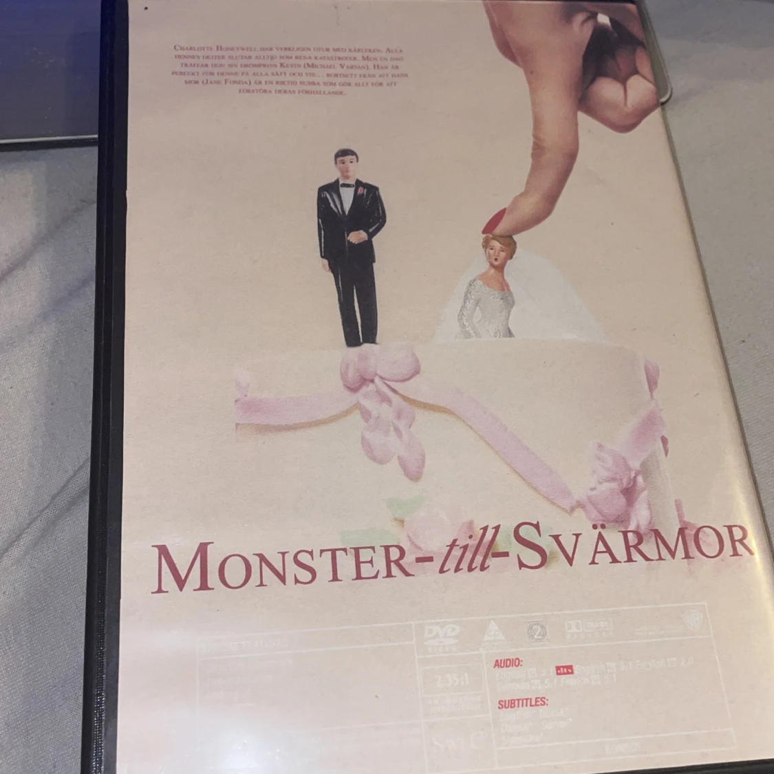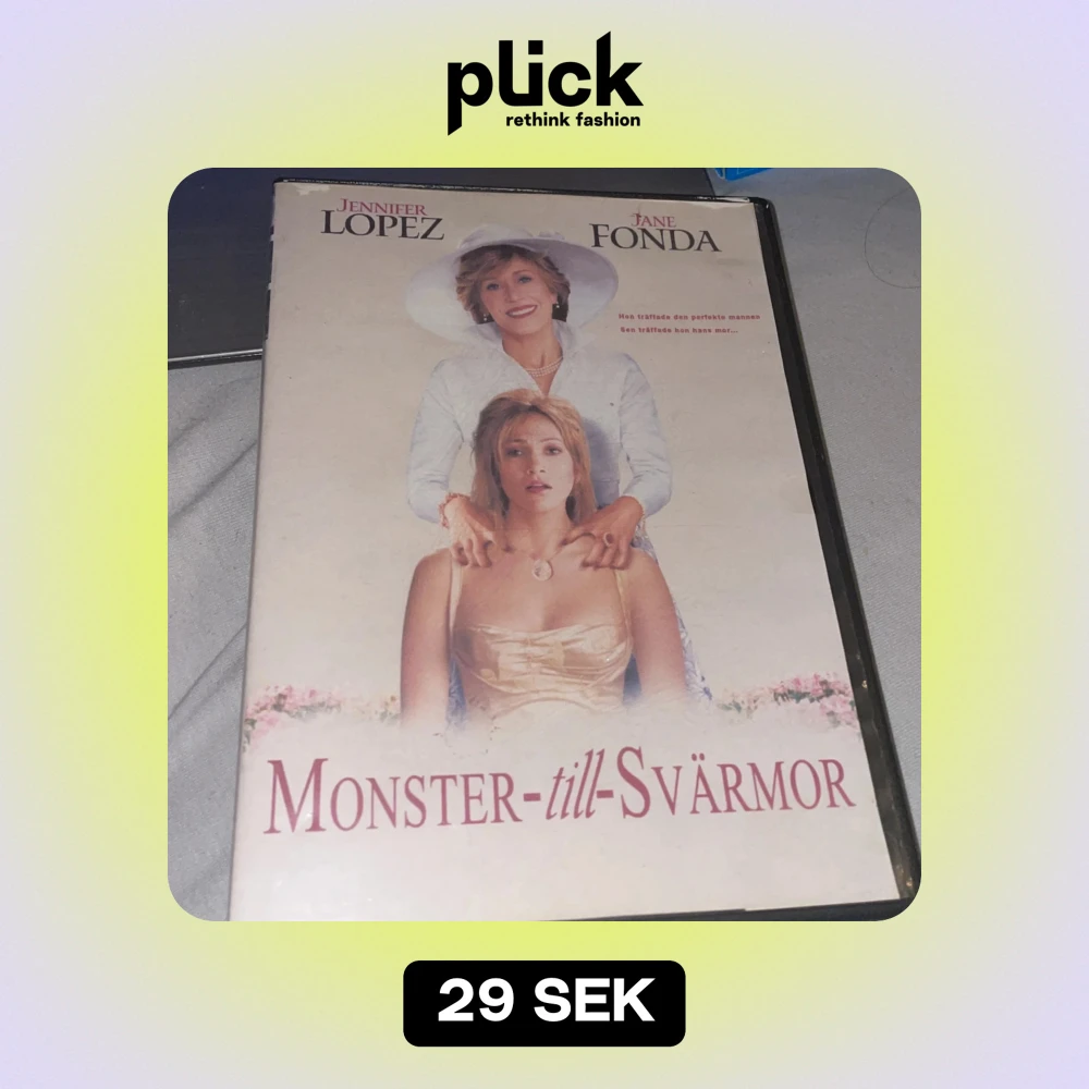 Säljer en DVD av filmen 'Monster-till-Svärmor' med Jennifer Lopez och Jane Fonda. Omslaget visar en humoristisk bild av en brud och hennes svärmor. Perfekt för en filmkväll med komedi och drama!