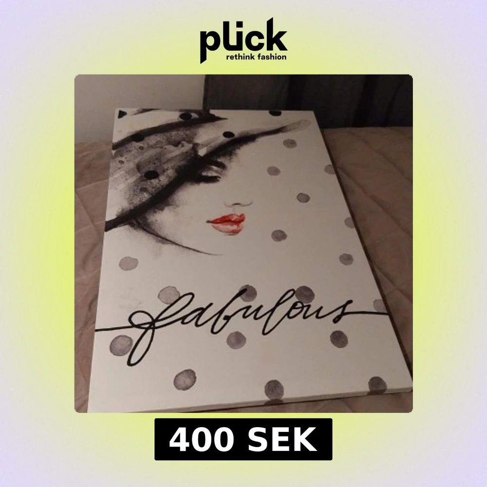 En stilren tavla med ett konstnärligt omslag i svartvitt och röda läppar, prydd med ordet 'fabulous' i snygg handstil. Perfekt för dig som gillar mode och konst!