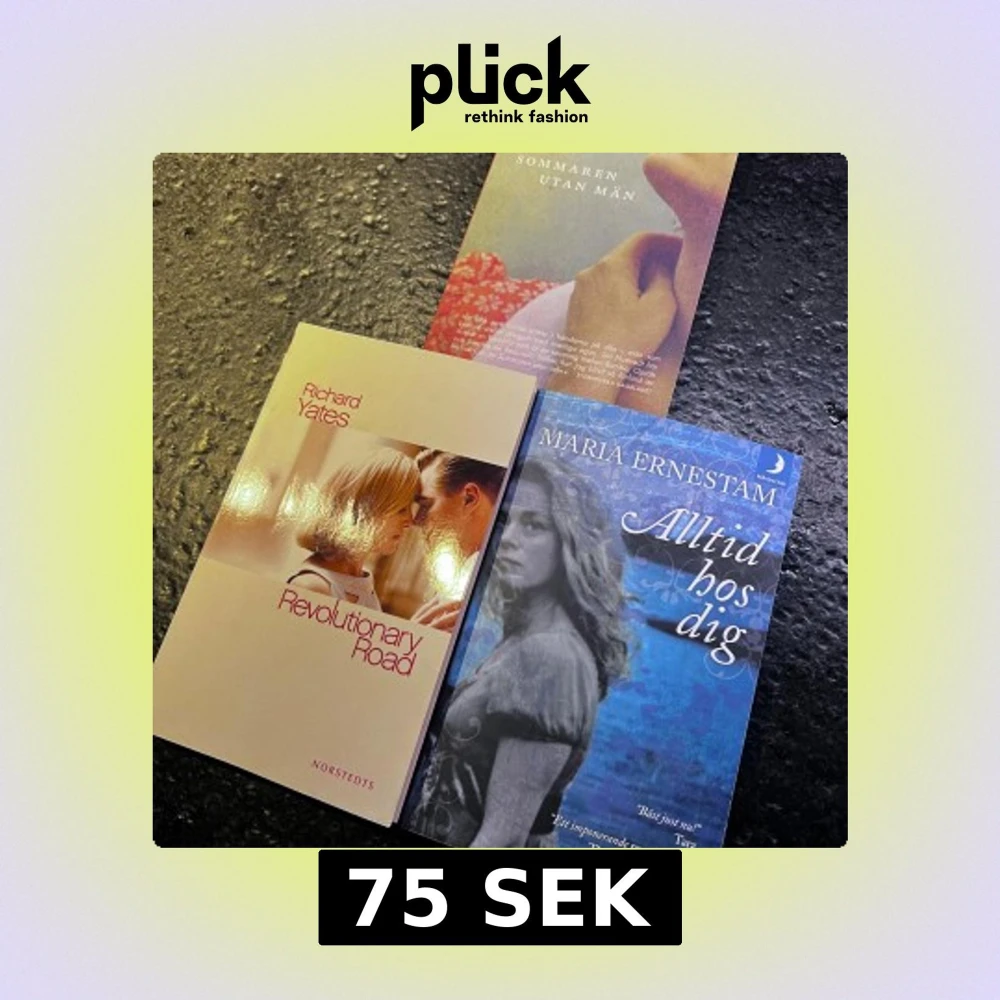 Säljer tre böcker tillsammans: • Alltid hos dig av Maria Ernestam • Revolutionary Road av Richard Yates • Sommaren utan män av Siri Hustvedt Perfekt paket för dig som gillar starka romaner och modern klassiker. Böckerna är i fint skick.