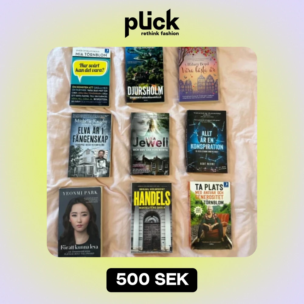 60kr/styck 1. Hur svårt kan det vara 2. Djursholm Sveriges ledarsamhälle 3. Våra bästa år 4. Elva år i fångenskap 5. Och sen var hon borta 6. Allt är en konspiration 7. För att kunna leva 8. Handelns 9. Ta plats Alla: 500kr ej frakt