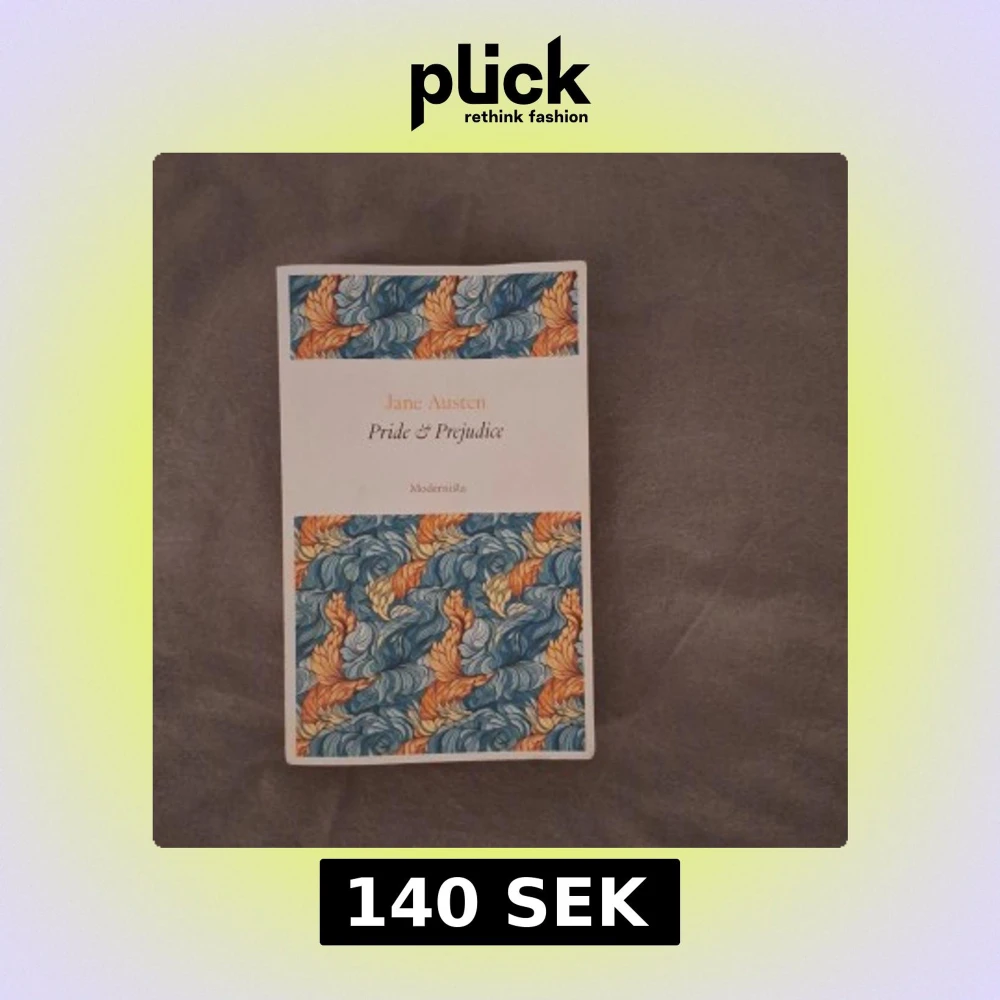 En vacker utgåva av Jane Austens klassiker 'Pride & Prejudice' från förlaget Modernista. Boken har ett färgglatt omslag med mönster i blått och orange. En tidlös berättelse om kärlek och sociala normer i den engelska adeln.
