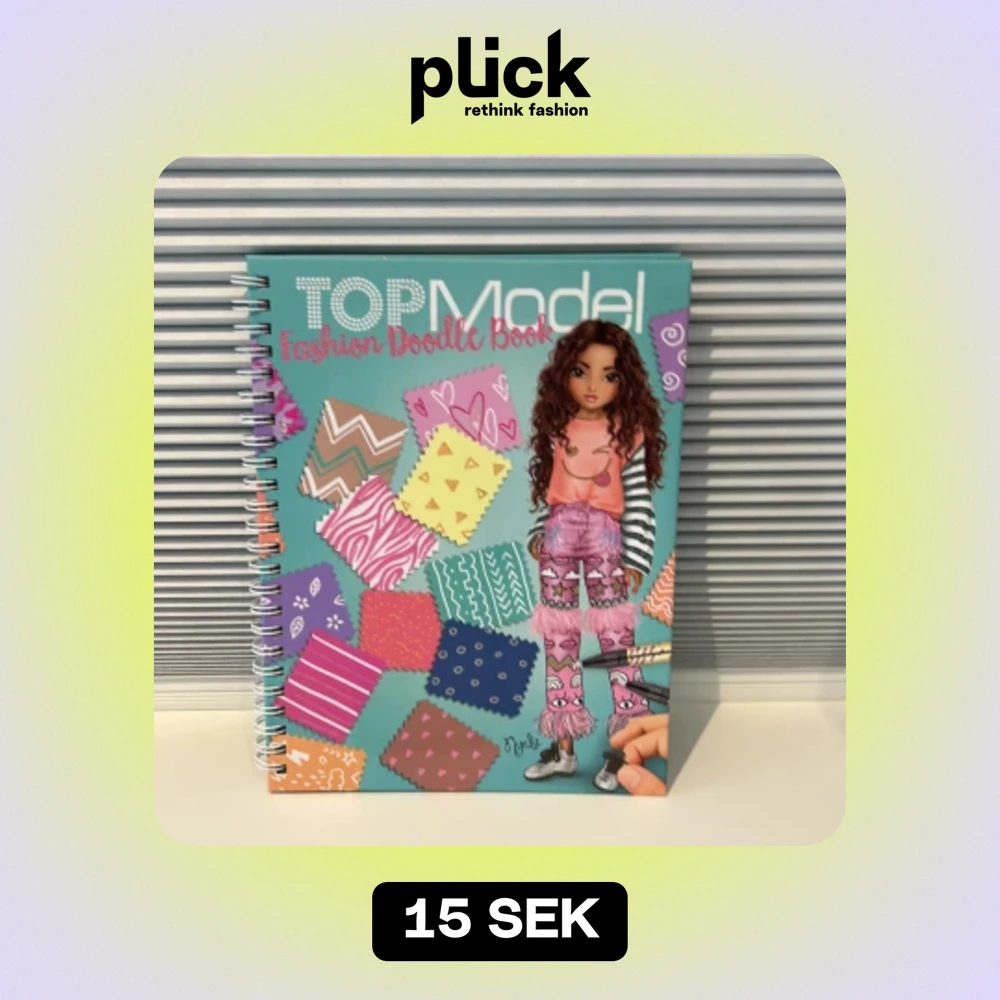 En Top Model bok med klistermärken i som man kan sätta på gubbar. Man kan både rita gubbar- figurer eller bara sätta på klistermärken på dom som redan är i den😀