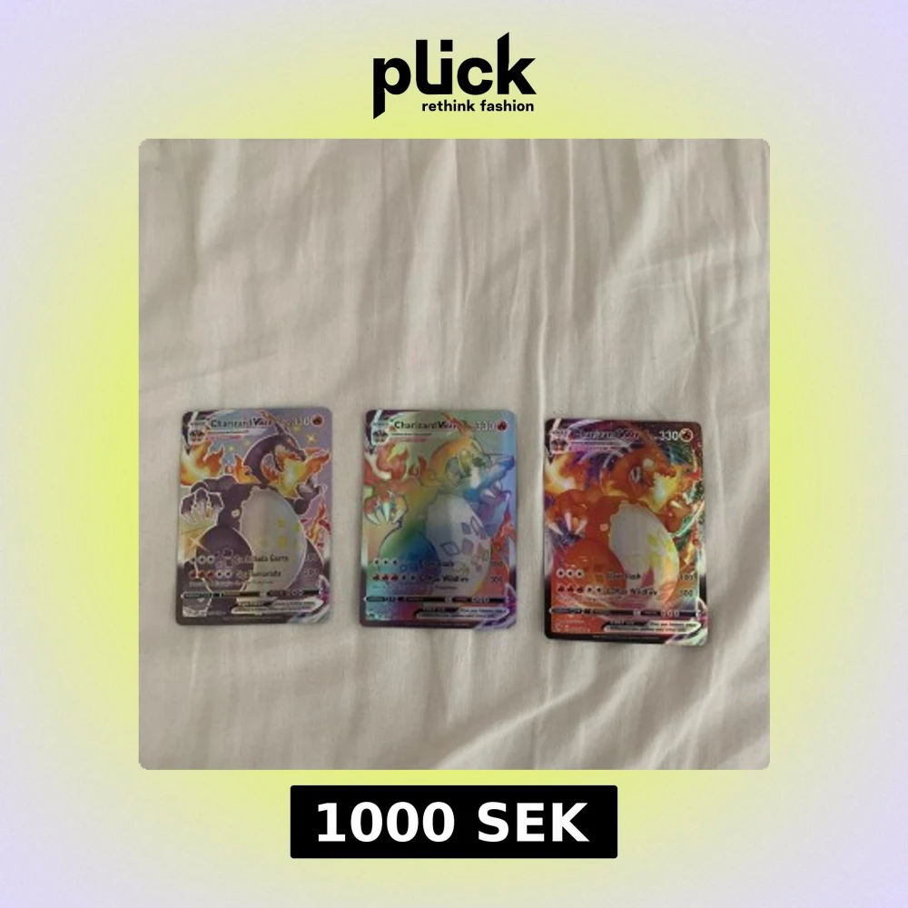 Tre exklusiva Charizard VMAX Pokémonkort med färgstark och glittrig design. Perfekt för samlare och fans som vill boosta sin samling med några av de mest ikoniska och eftertraktade korten. Korten är i fint skick och redo för nya äventyr!