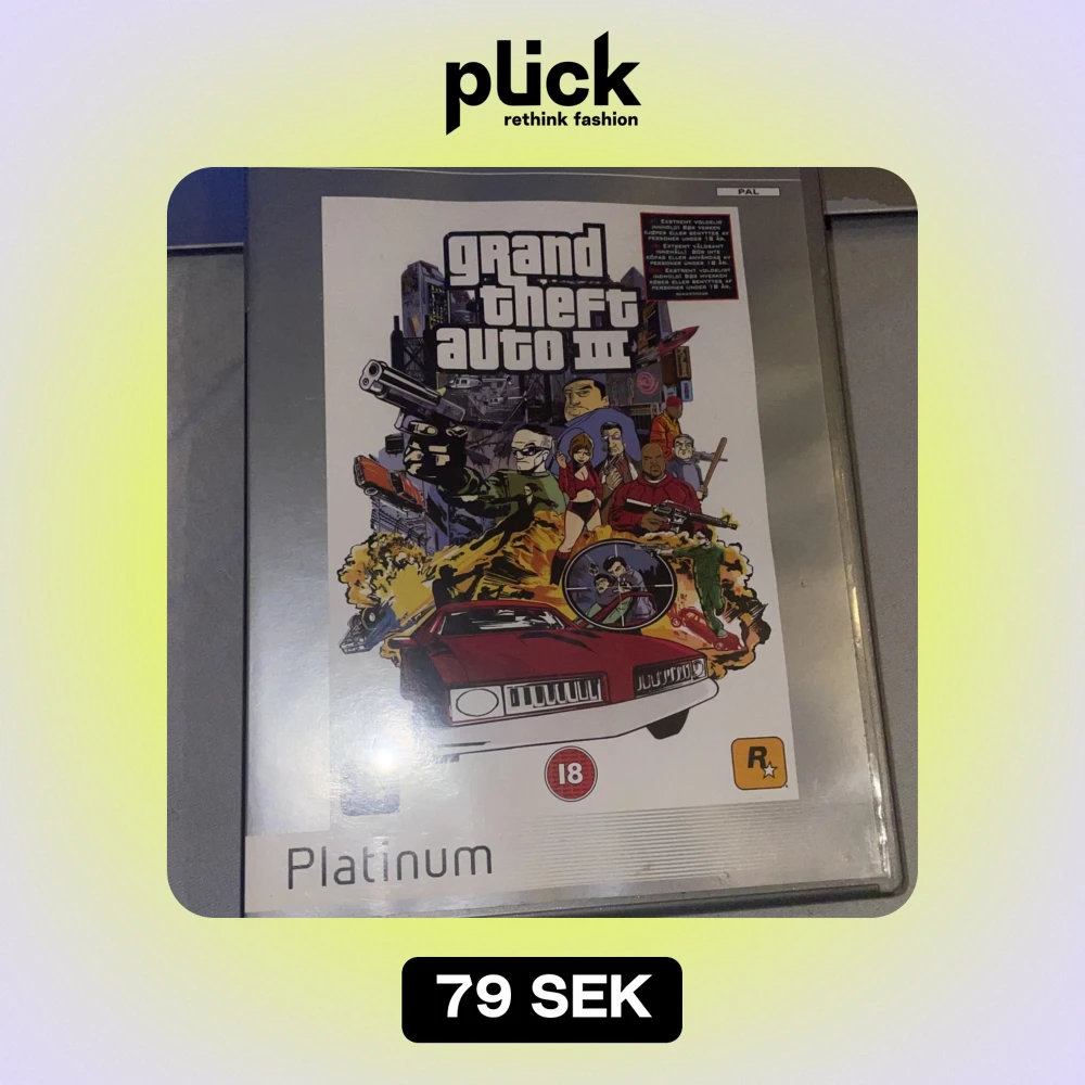 Säljer Grand Theft Auto III i Platinum-version för PlayStation 2. Spelet utspelar sig i Liberty City och erbjuder en öppen värld med massor av action och äventyr. Omslaget har en ikonisk design med karaktärer och fordon. Perfekt för samlare eller nostalgiker!