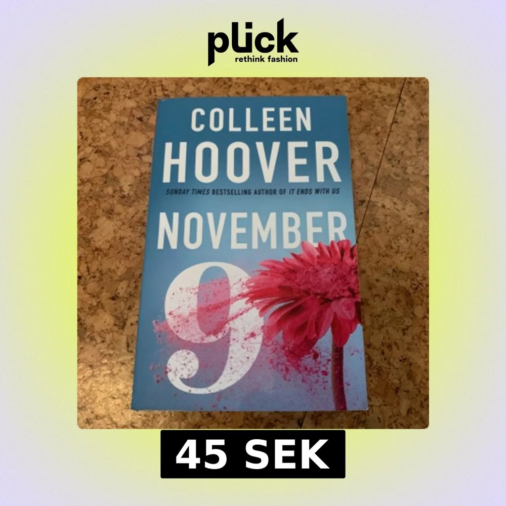 En roman med blått omslag och stor vit text, skriven av Colleen Hoover. Omslaget har en röd blomma och siffran 9 i vitt. Perfekt för dig som gillar samtida kärleksromaner.