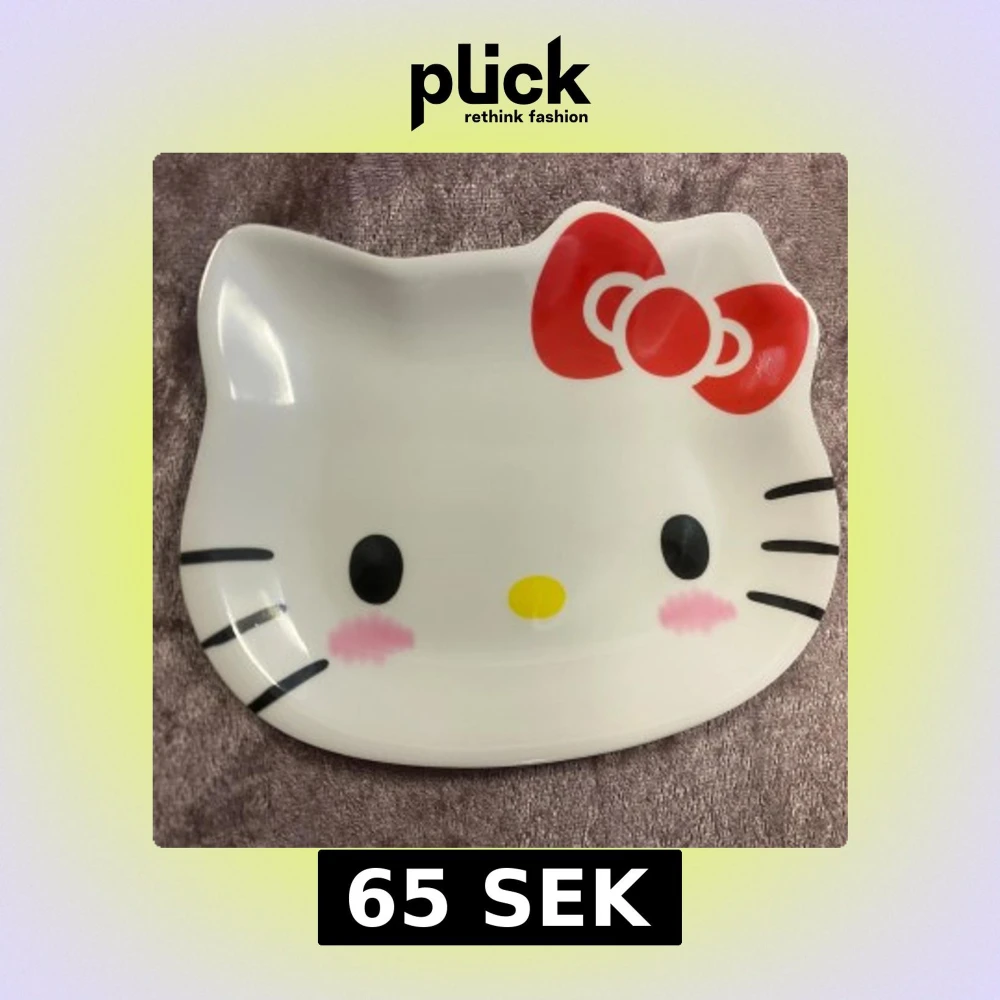 Bilderna visar tre olika Hello Kitty-tallrikar i olika färger och mönster, perfekta för dig som älskar söta och trendiga prylar. Tallrikarna har den ikoniska Hello Kitty-designen och passar både till snacks och dekoration. Perfekt för att göra vardagen lite roligare! 65kr/st , samma frakt