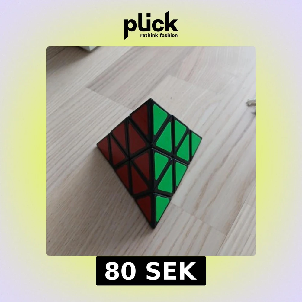 Bilderna visar en Pyraminx, en populär pusselkub i pyramidform med färgglada sidor. Den är perfekt för dig som gillar utmaningar och vill träna hjärnan på ett roligt sätt. Passar både nybörjare och erfarna kub-lösare. En kul aktivitet att ha med sig överallt! Skriv vid prisförslag.