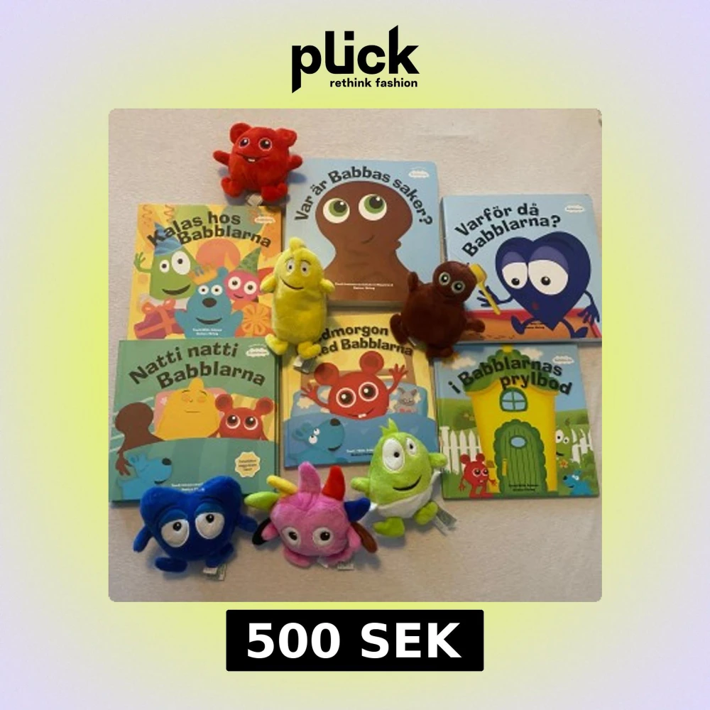 Ett färgglatt bokpaket med sex böcker från Babblarna-serien. Inkluderar titlar som 'Var är Babbas saker?' och 'Natti natti Babblarna'. Perfekt för små barn som älskar Babblarna och deras äventyr. Böckerna har färgglada illustrationer och enkla texter som är lätta att följa. 6 st böcker och de små babblarna 500 för allt värde 1500