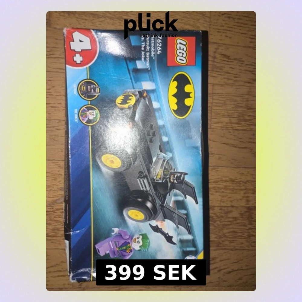 Bilderna visar en LEGO-låda med Batmobile och figurer från Batman